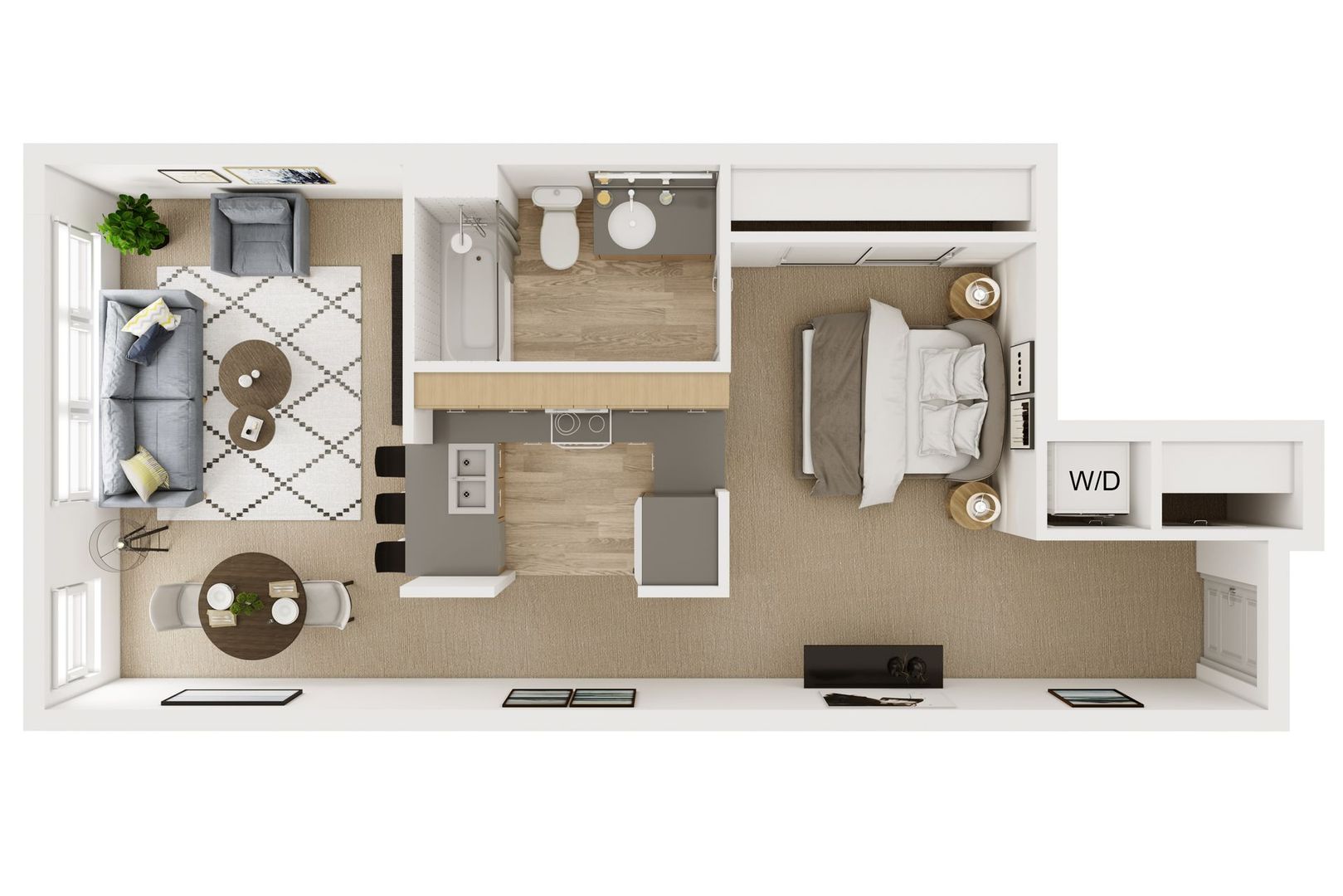 Our community features 98 contemporary apartment homes, offering a variety of studio, one-bedroom, and two-bedroom floor plans designed to fit your lifestyle. Each residence is thoughtfully laid out with comfort and functionality in mind, providing bright living spaces that feel both modern and welcoming—perfect for professionals, students, and families alike.